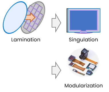 Our Foundry survice primarily support from panel assembly to substrate mounting both Glass-Silicon and Glass-Glass structures.